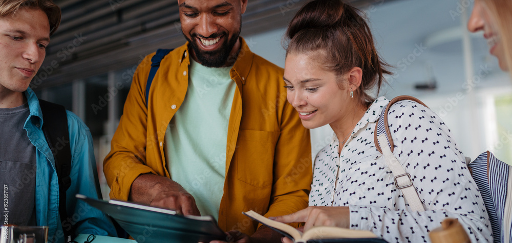 Young university friends hanging out between lectures. #1923857137