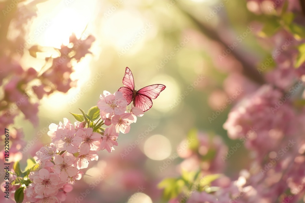 A breathtaking image of a delicate butterfly perched on a cherry blossom branch, capturing the ephemeral beauty of nature and the intricate details of both the flower and butterfly. #1292200677