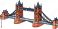 A cartoon illustration of a famous London bridge with its distinctive towers and suspension structure #1862792168