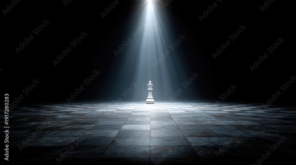 A chess king stands alone in a spotlight, symbolizing business leadership, strategy, and the singular focus needed for career growth. #1917280283