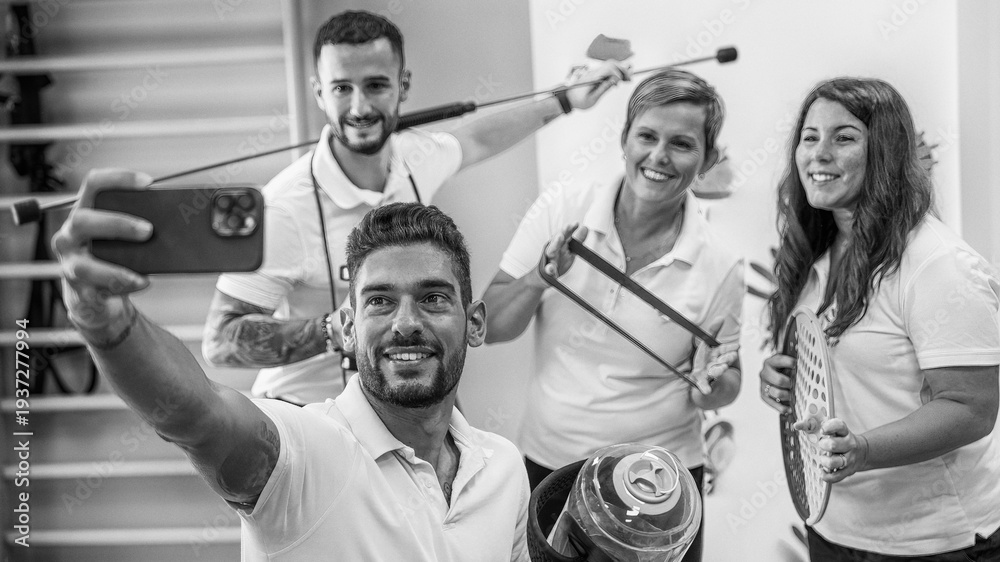 A group of osteopaths and physiotherapists taking selfie in their new studio #1937277994