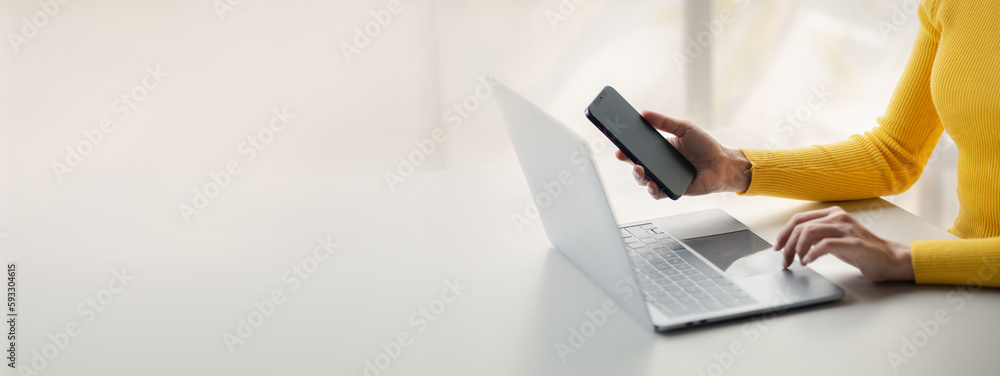 A person holds a mobile phone to use social media on a smartphone, communicating via the Internet on a smartphone. The concept of using technology in communication. #593304615
