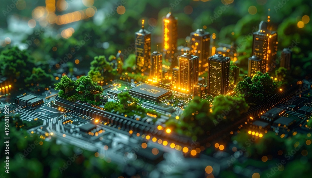 A unique blend of advanced technology and nature. This visual depicts the concepts of smart cities, eco-friendly technology, and a sustainable future.d #1761811227