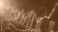 Abstract glowing big data forex candlestick chart on blurry city backdrop. Trade, technology, investment and analysis concept #760150631