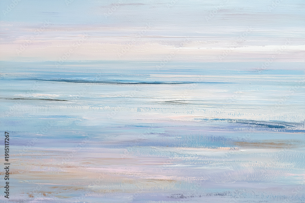 Abstract ocean seascape painting with soothing pastel blue, purple, and beige brushstrokes creating a calming atmosphere #1915117267