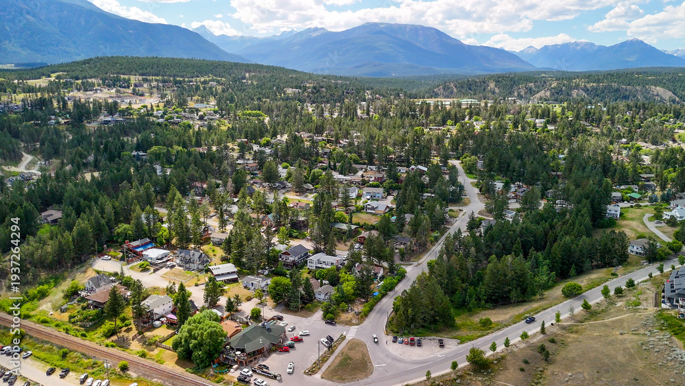 Aerial view of Invermere town along the lake, British Columbia - Canada #1937264294