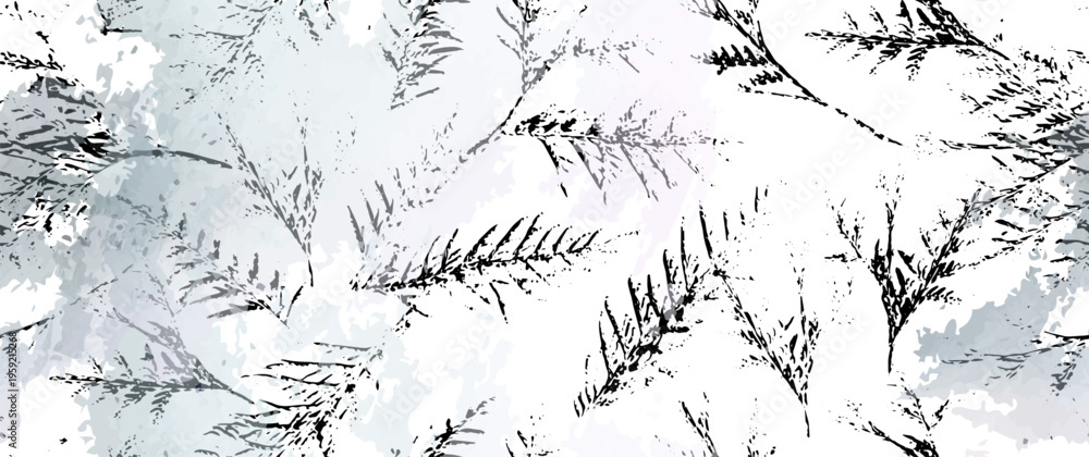 Aesthetic Seamless Pattern. Leaves Trees, Shrubs Stamp Effect. Neutral Tree Leaf Pattern. Texture Spots Watercolor Overlay. Transparency Wallpaper Rustic Modern Design. Fancy Delicate Fabric Textile. #1959215268