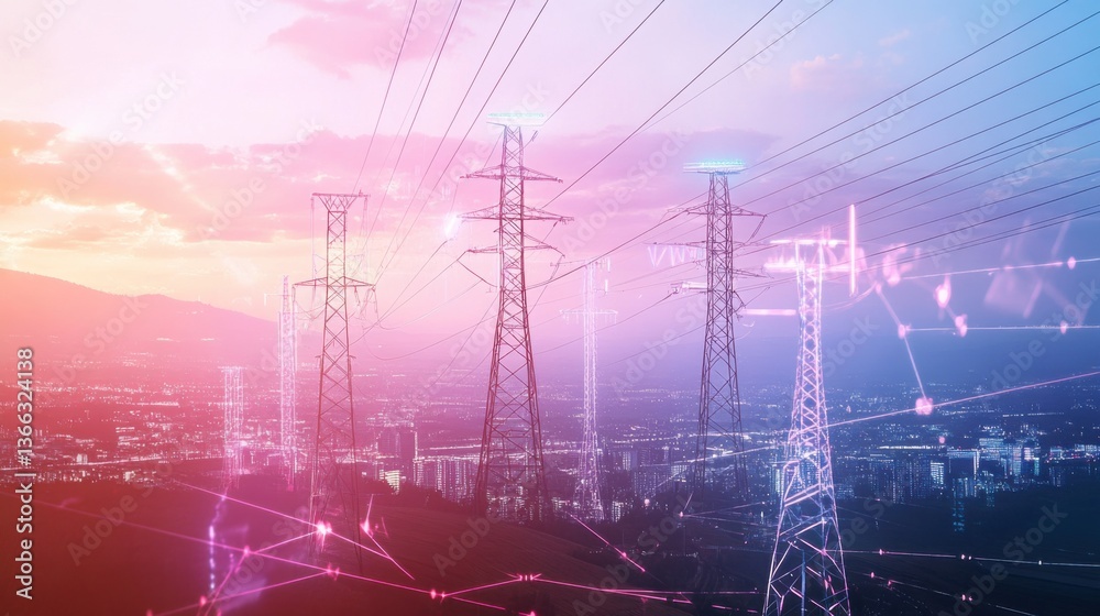 An AI powered system optimizing energy grid management by analyzing real time energy demand and supply data, futuristic AI-driven energy platform, Smart grid technology style #1366324138