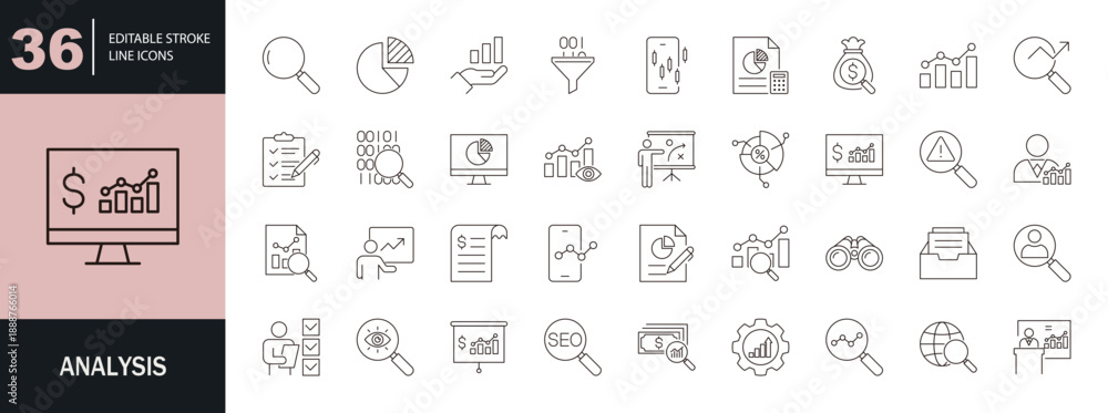 Analysis icon set. Editable line icons. Vector illustration. #1888766014
