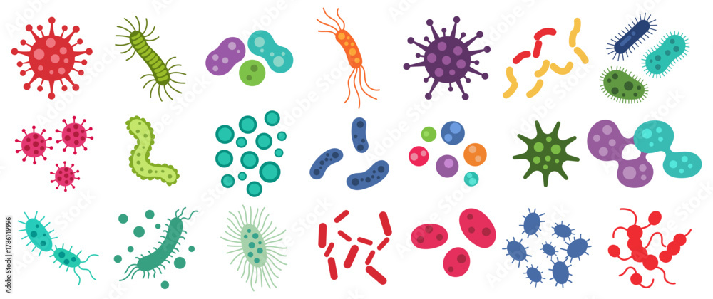Bacteria, microbe, virus outline vector icon set. Microscopic bacterium and bacillus collection, isolated on white background #1786149996