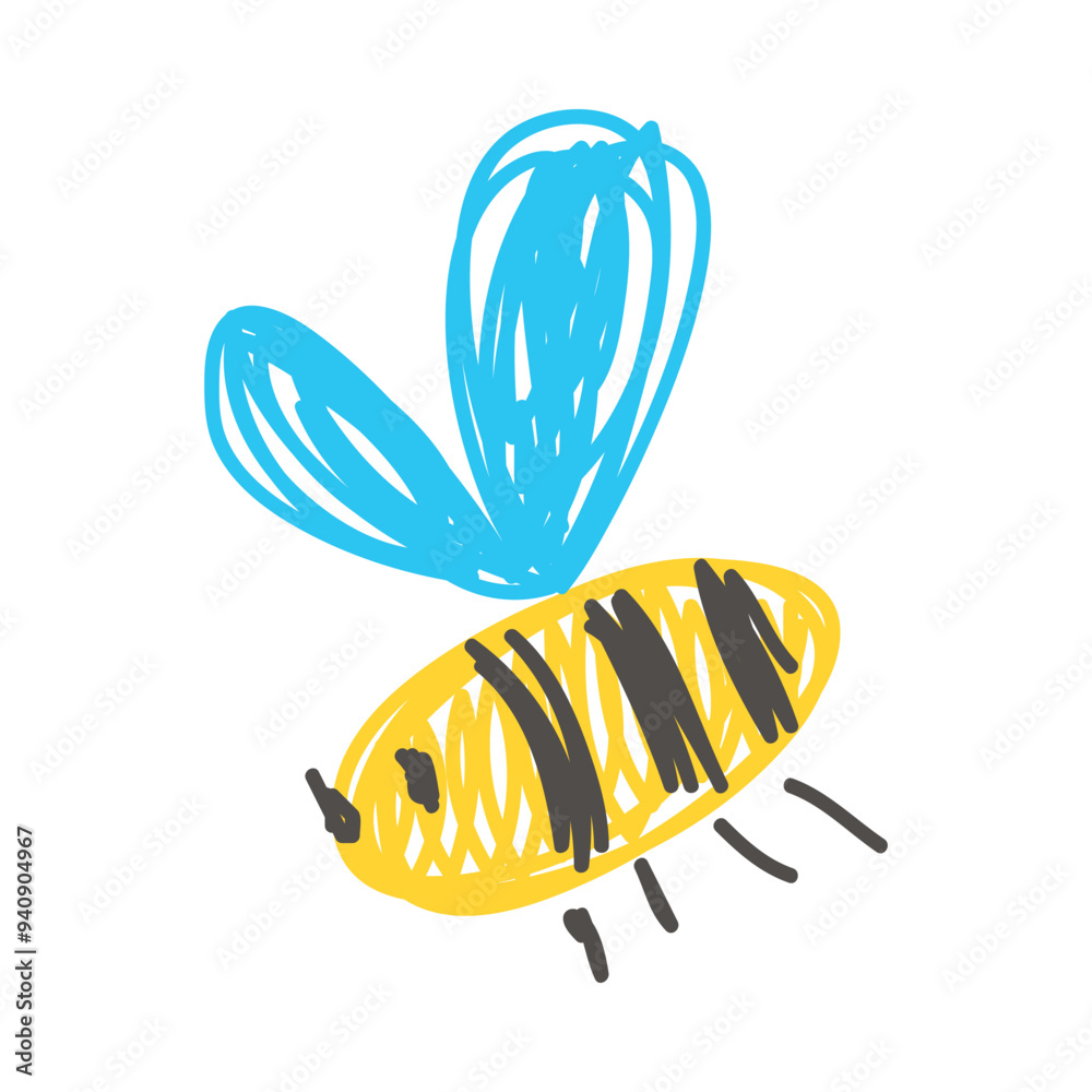 Bee as Kids Doodle Simple Hand Drawn Element Vector Illustration #940904967