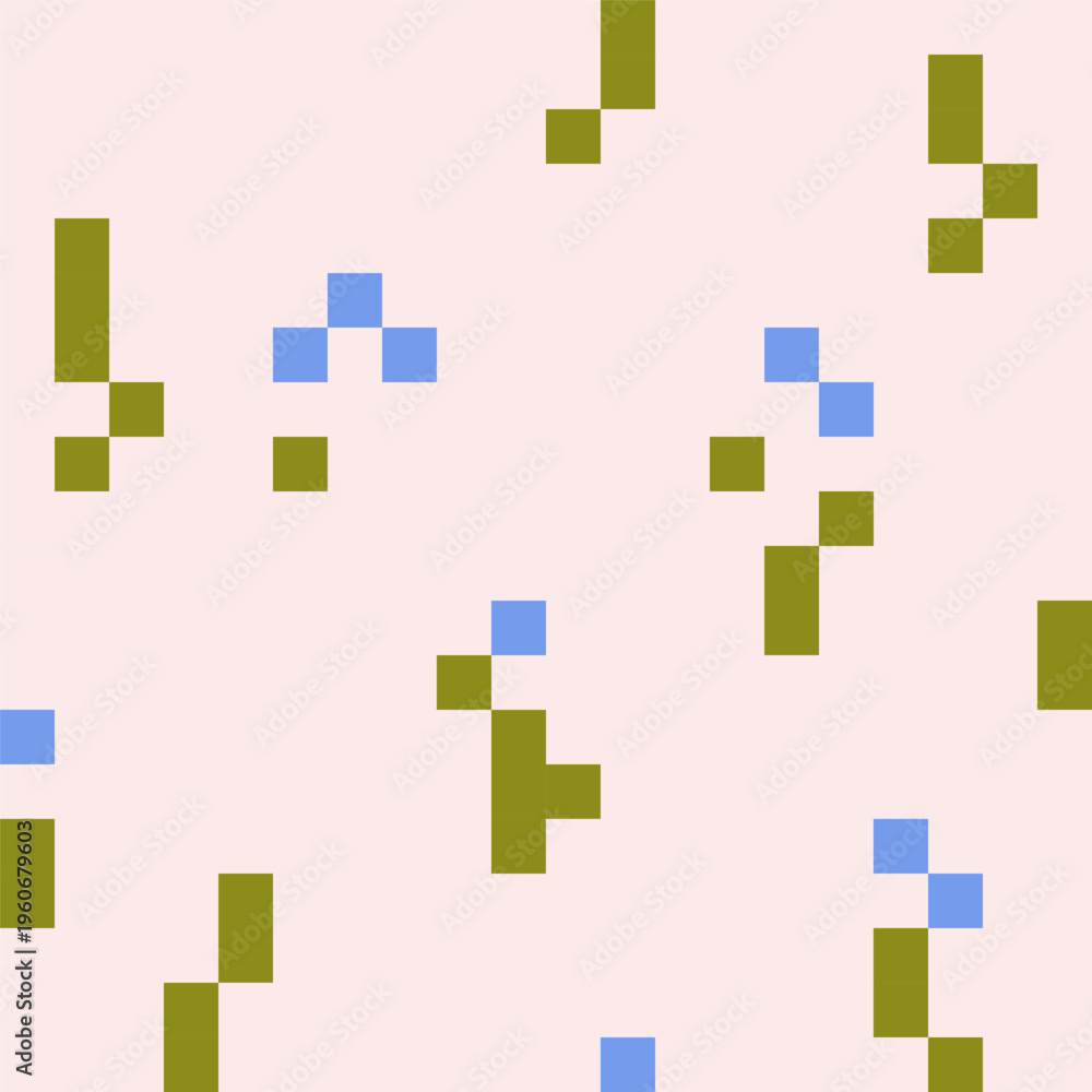 8 bit, broken pixel art pattern, seamless background. Retro 8bit digital texture with squared pixelart flowers. Endless abstract print for textile, wrapping design. Colored flat vector illustration #1960679603