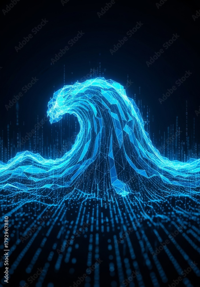 Blue Ocean Wave - A wave surges, symbolizing flow, technology, connectivity, innovation, and the vast potential of data #1792967880