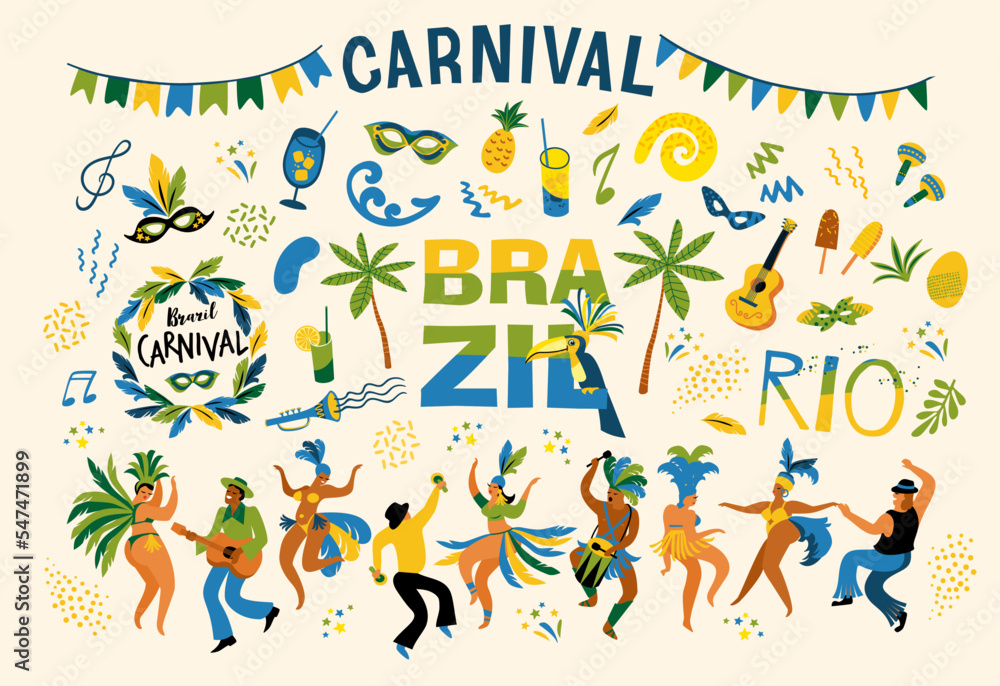 Brazil carnival. Big vector clipart. Isolated illustrations for carnival concept and other #547471899