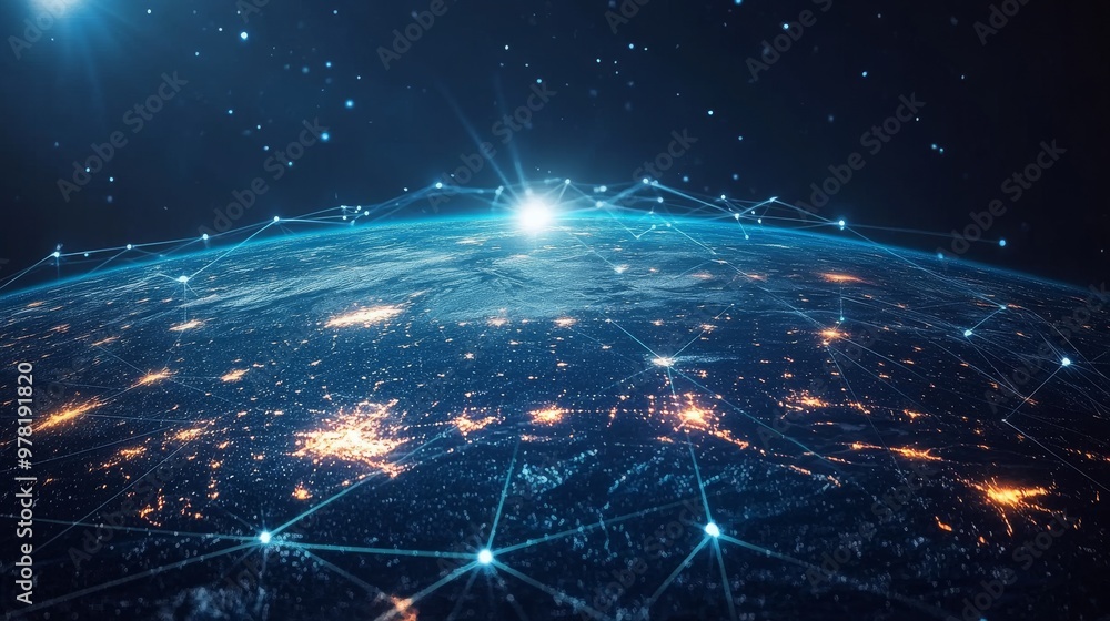 Business and economic growth on global business network, Data analysis of financial and banking, Stock, AI, Technology and data connection, Security, Blockchain and Networking, Business strategy. #978191820