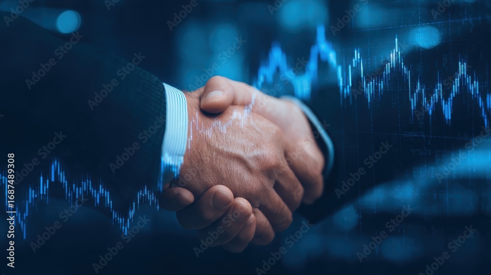 Businessmen shaking hands against the background of a stock market graph, a sign of success and business collaboration concept. #1687489308