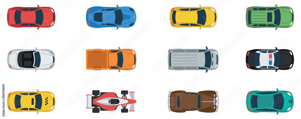 Car top view icon. Top view set of cars and trucks vector. Vector car top view icon illustration. Vehicle flat isolated car icon. #1869398001