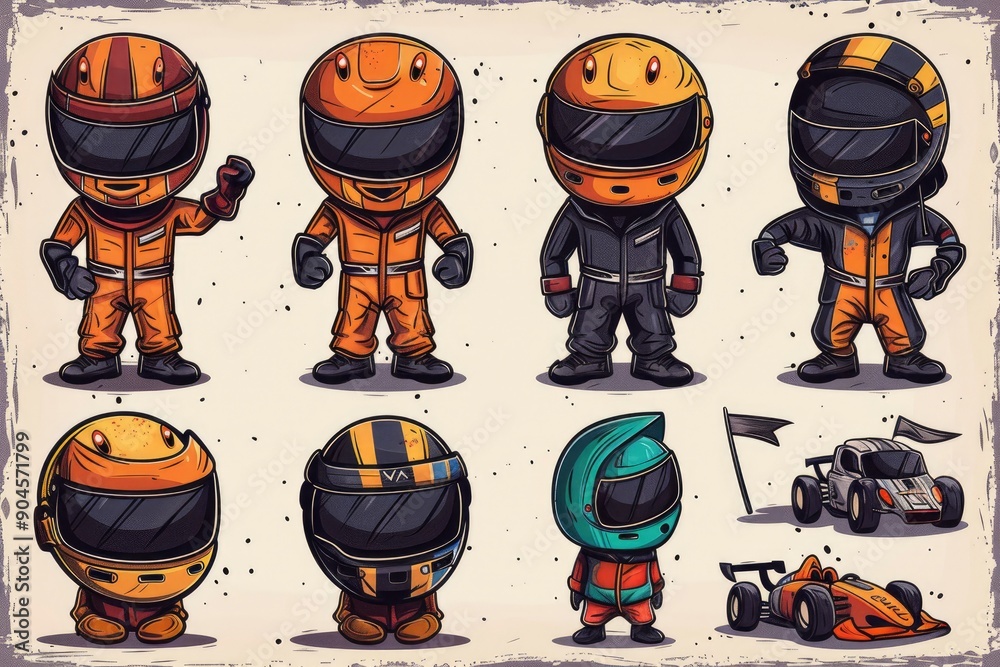 Cartoon Racing Drivers and Cars Illustration Set #904571799