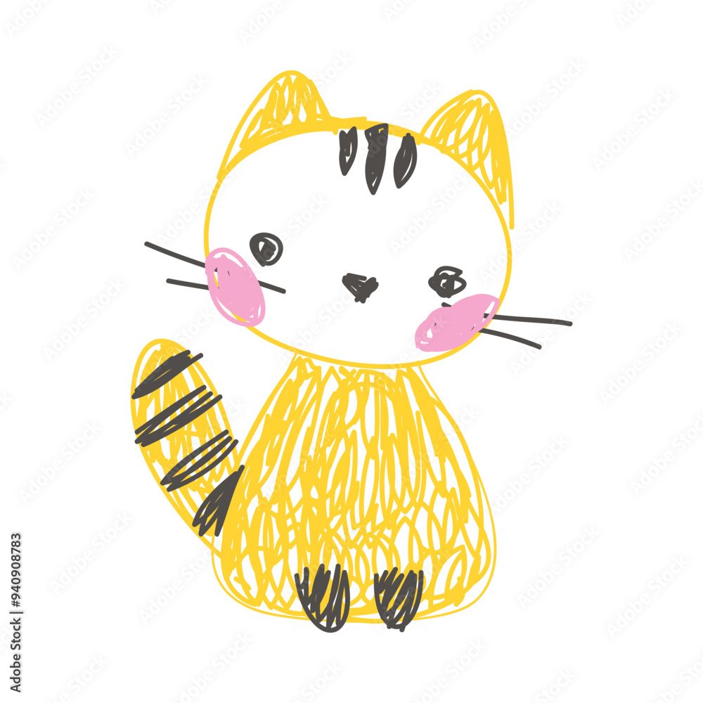 Cat as Kids Doodle Simple Hand Drawn Element Vector Illustration #940908783