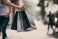 Close up of woman`s hand holding shopping bags while walking on the street. #213941253