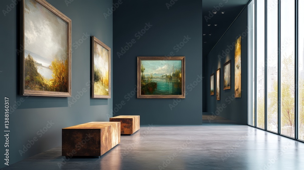 Closeup of beautiful paintings in an art gallery premium photo #1388160317