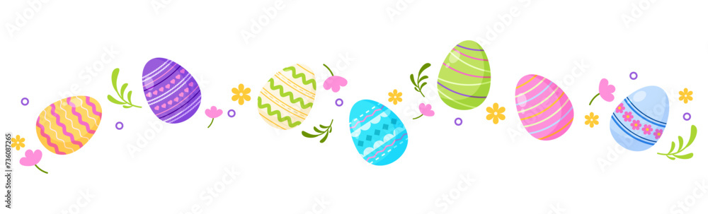 Colorful divider cute eggs easter day decoration border illustration vector #736087265