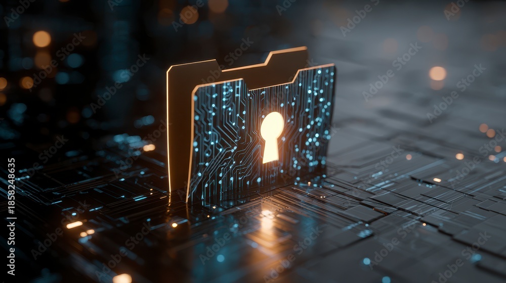 Conceptual image of a folder with a keyhole integrated on a circuit board, suggesting data protection & information security #1858248635