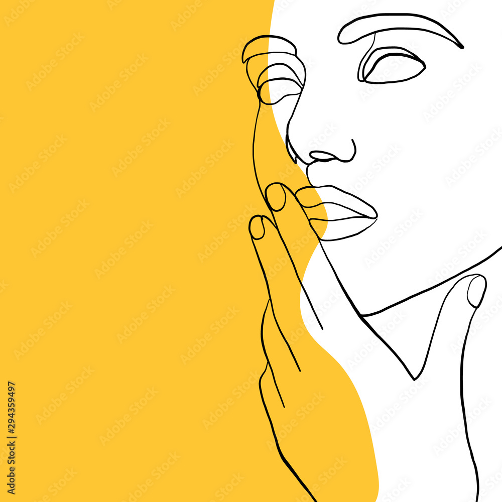 Continuous line, drawing of beauty woman face, fashion concept, woman beauty minimalist, vector illustration for t-shirt slogan design print graphics style. One line fashion illustration #294359497