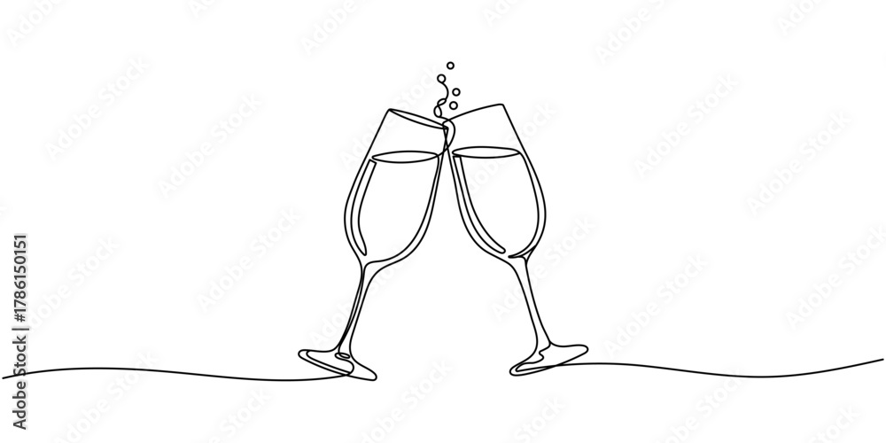 Continuous One line drawing of champagne and glasses. Editable stroke #1786150151
