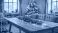 Cozy Christmas living room, a decorated table, warm lights. #1633877533