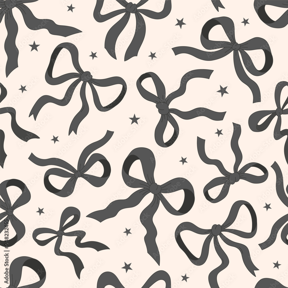 Cute Black ribbon bow vector seamless pattern. Coquette Halloween background. #948232455