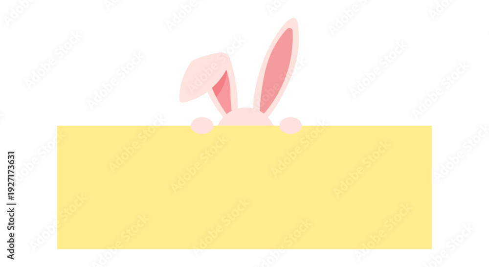 Cute bunny ears peeking over a yellow blank sign for easter greetings and messages #1927173631