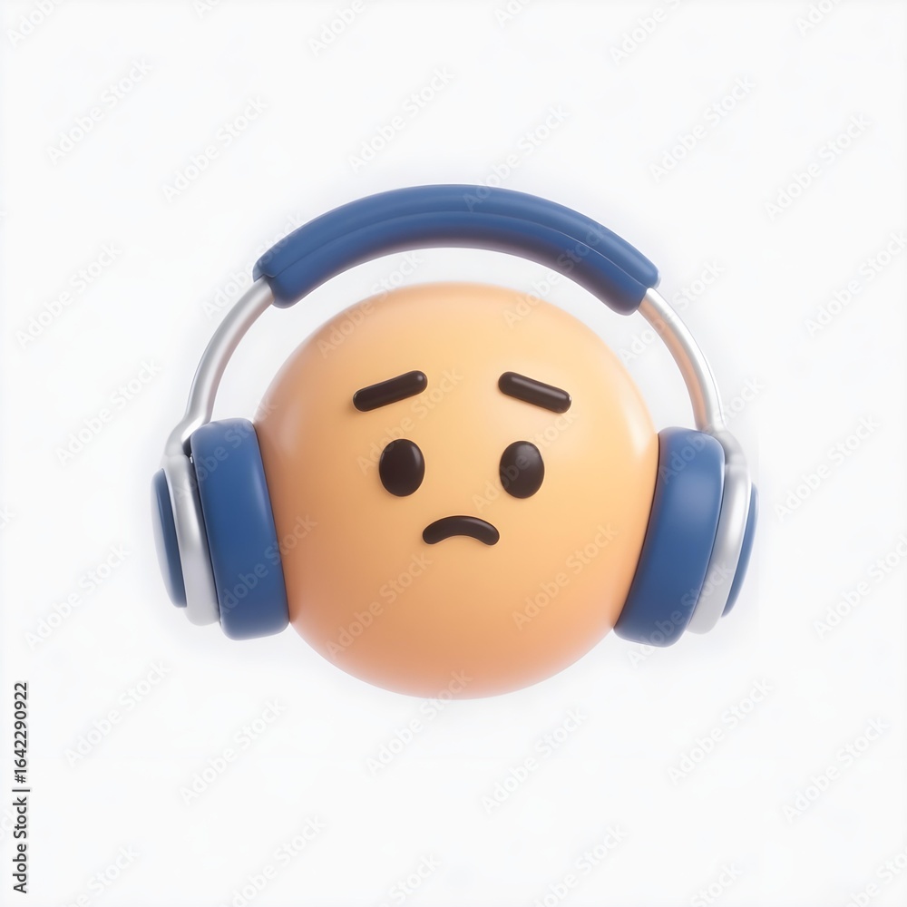 3d icon sad worried face emoji with noise canceling headphones minimal white background neurodiversity autism ADHD auditory sensitivity inclusion #1642290922