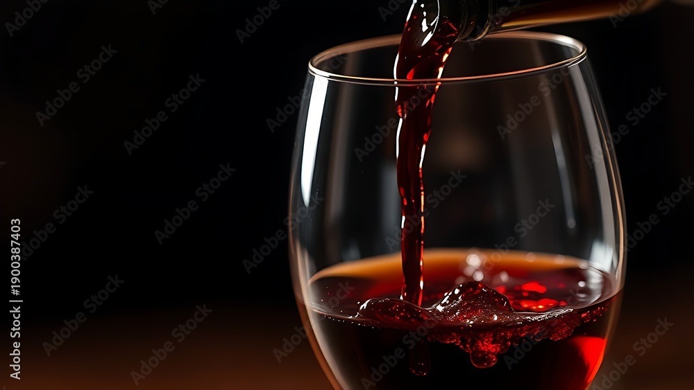 decanting. Red wine pouring into a crystal glass, capturing the elegance and richness of the liquid. wildlife magazines, conservation campaigns, designed for nature documentaries and education. #1900387403