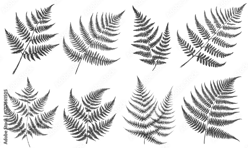 Delicate Unfurling fern linework ink sketch hand drawn pen drawing vector illustration #1717561505