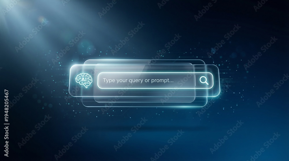 Digital Search Bar: A luminous, transparent search bar floats in a futuristic digital space, inviting users to input queries and explore the boundless realms of information and knowledge #1948205467