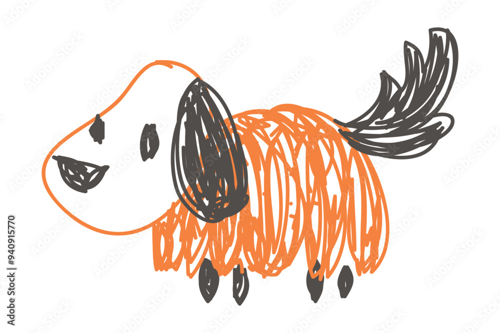 Dog as Kids Doodle Simple Hand Drawn Element Vector Illustration #940915770