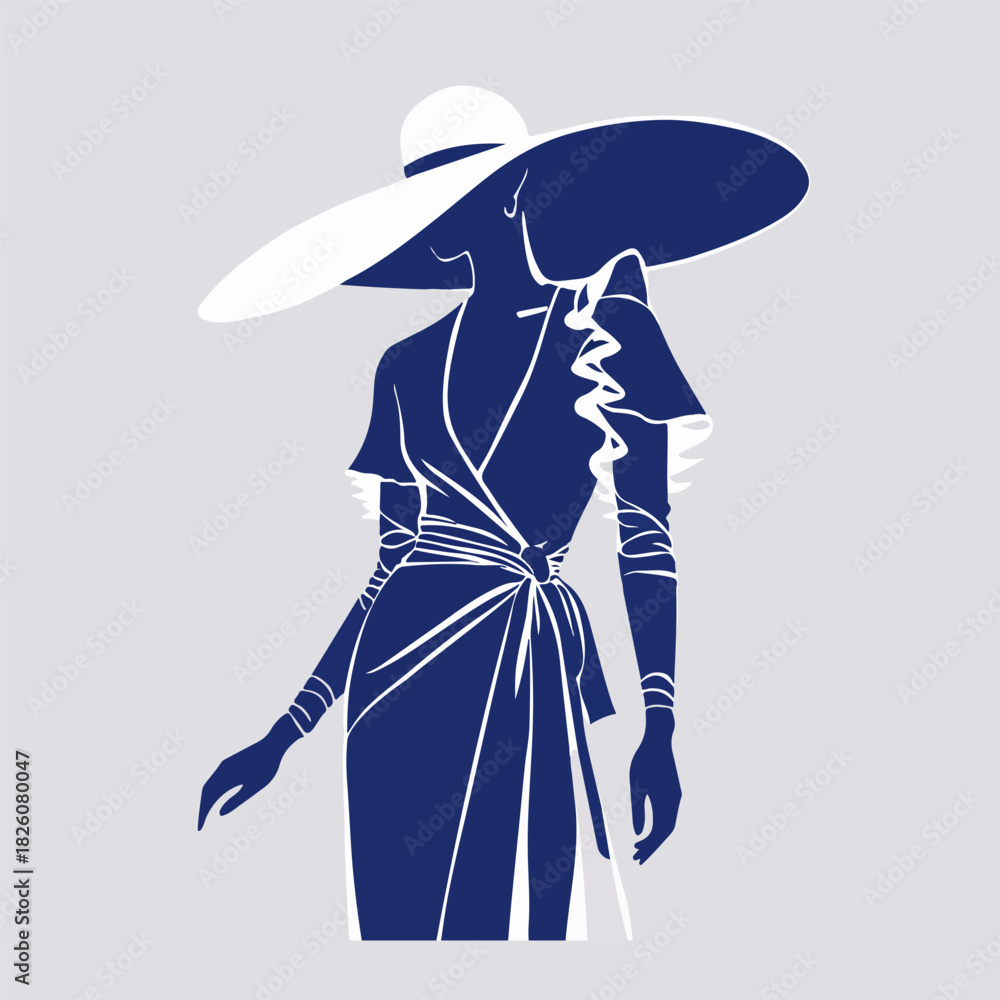 Elegant Female Figure Abstract Line Drawing. Woman Dress Elegant Portrait. Minimalist Fashion Vector Drawing. #1826080047