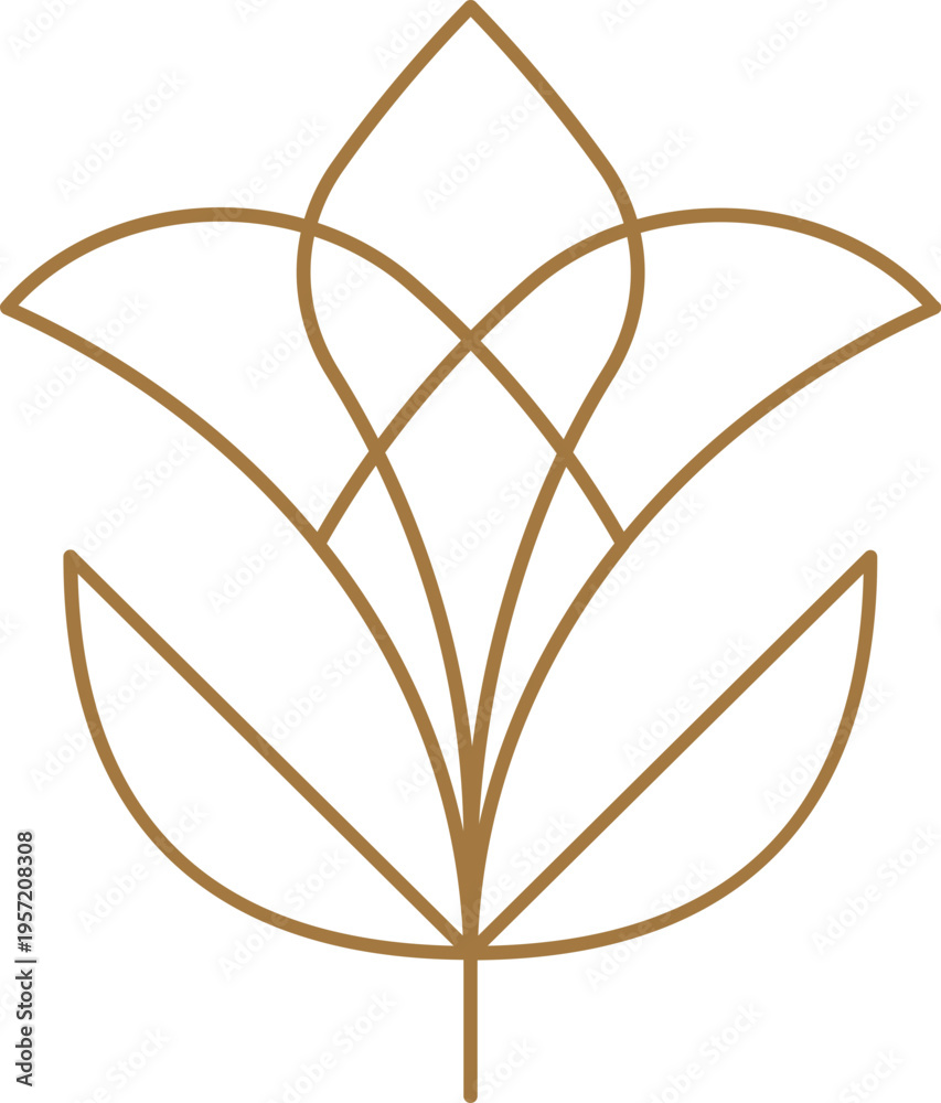 Elegant golden line art flower logo and geometric linear decorative element. Modern abstract minimalist floral design. #1957208308