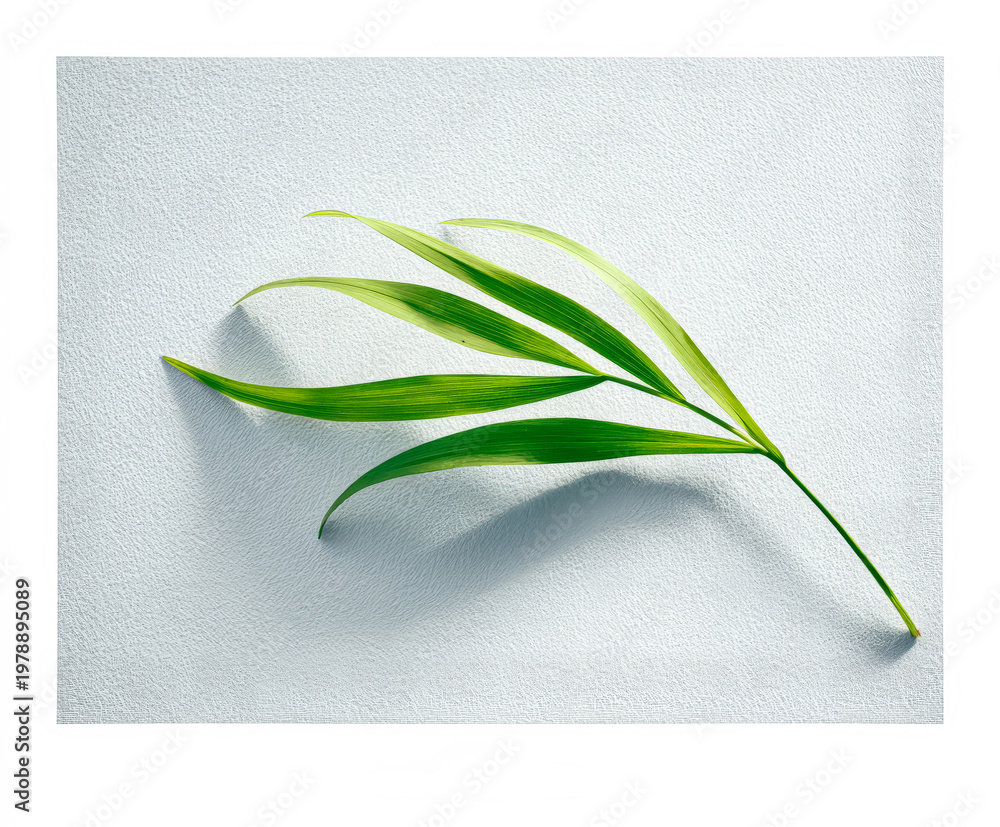 Elegant Green Leaf on Textured White Background #1978895089