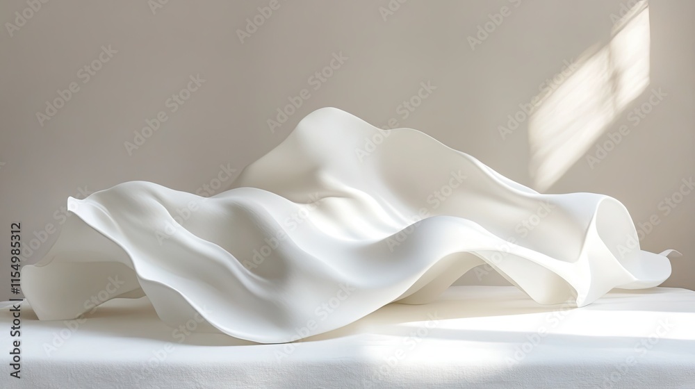 Elegant White Fabric Sculpture with Soft Waves in Natural Light #1154985312