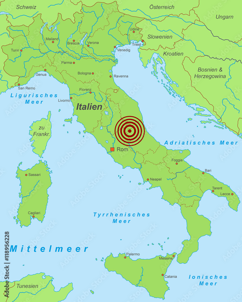 Erdbeben in Abruzzen/ Italien (24. August 2016) - Vektorgrafik in Grün #118956228