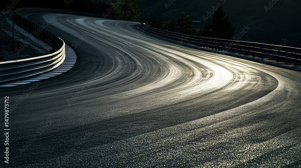 Exploring race track curve asphalt surface for motorsport and automotive photography use #1479873712