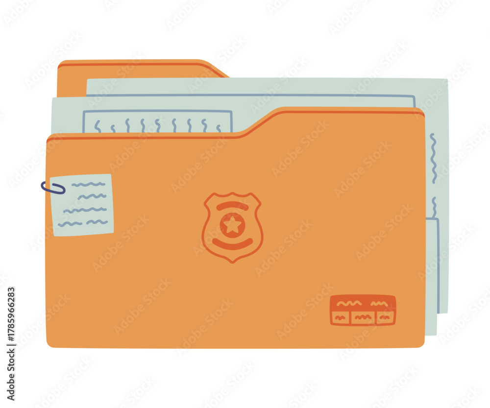 Folder with Document and Evidence as Police Equipment and Professional Policeman Object Vector Illustration #1785966283
