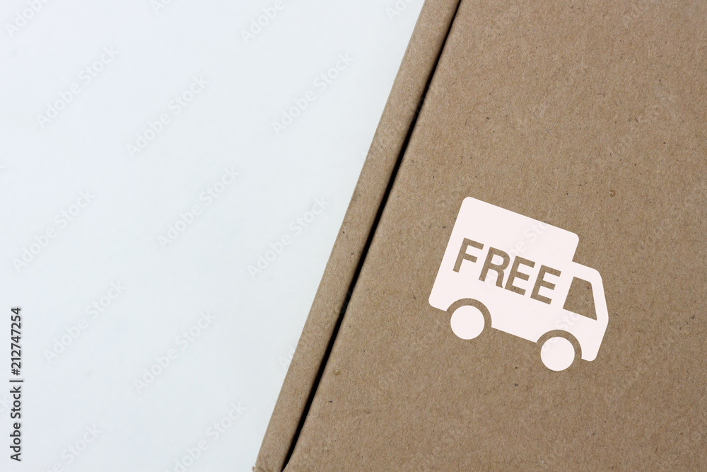 free delivery, business,online shopping, ecommerce and delivery service concept - brown box with note " free delivery " on a gray background. #212747254