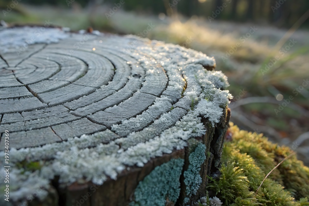 Frosted tree stump with moss and lichen in forest #1978407369