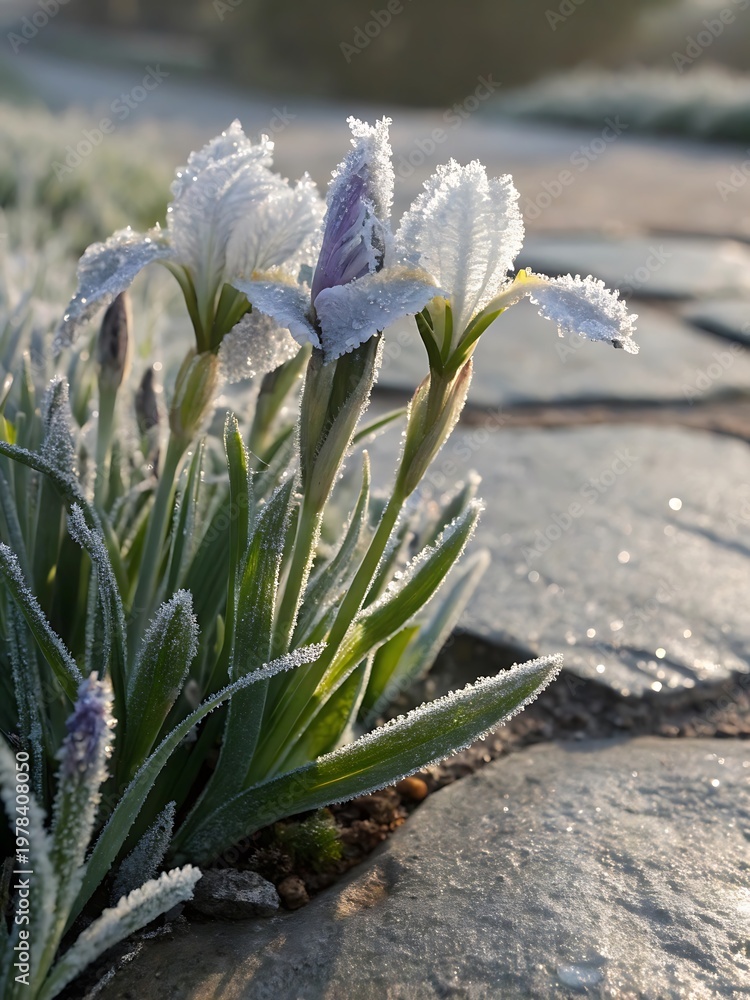 Frosty flowers on a cold morning outdoors #1978408050