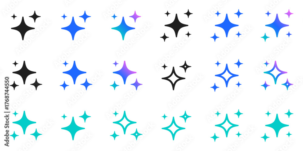 Generative AI logo icon magic sparkle stars symbol , Artificial intelligence sign. Vector ai generated icon blue logo, gradient sparkles #1768744550