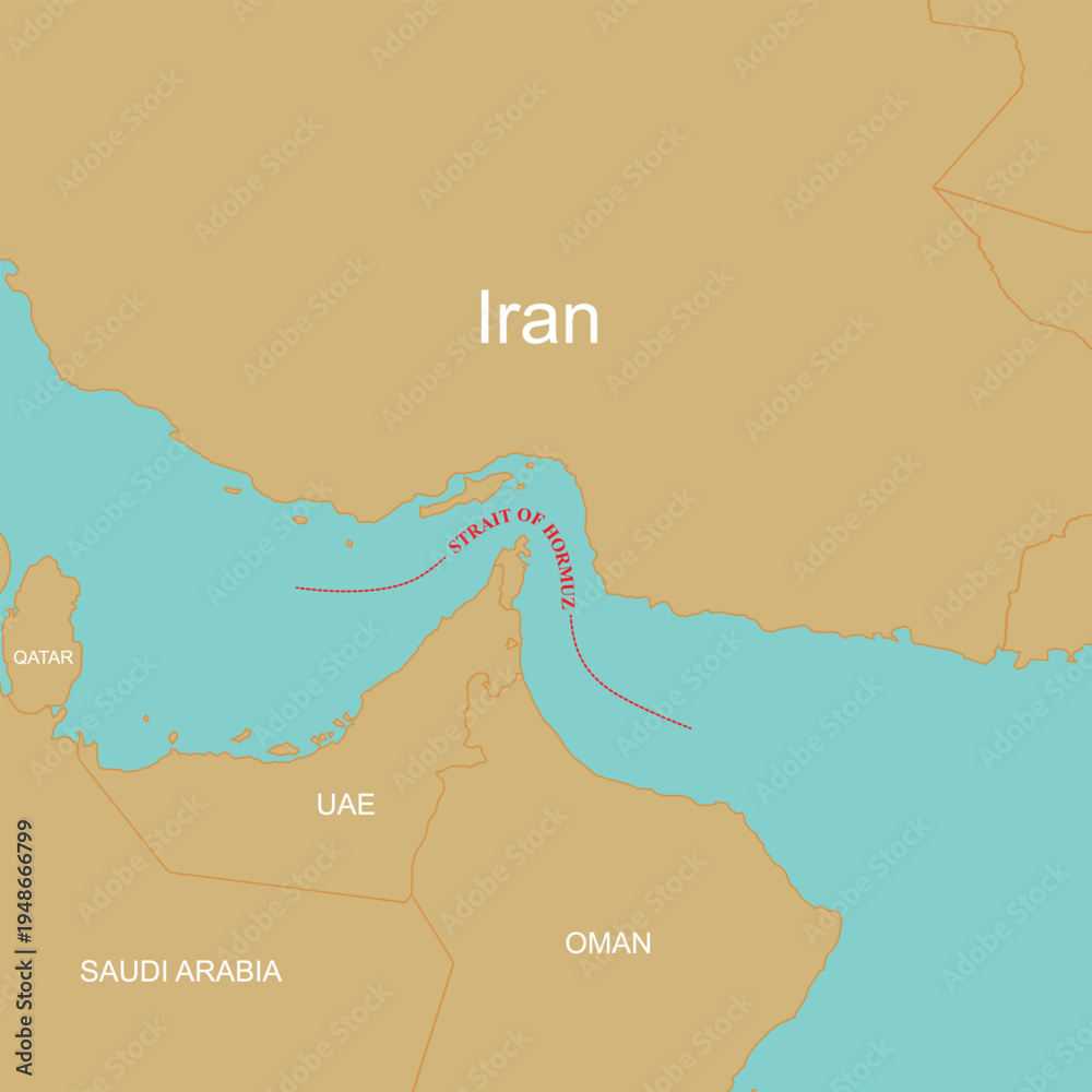 Geopolitical map illustration showing the Strait of Hormuz, Iran, and the United Arab Emirates (UAE). #1948666799