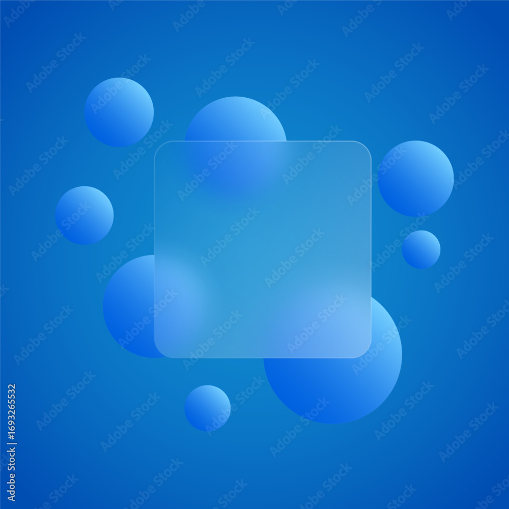 glassmorphism background banner with transparent glass frame template . Realistic Frosted glass morphism effect with blurred abstract gradient blue circle shapes. Vector illustration #1693265532